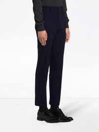 slim-fit trousers Luxury Italian heritage and expert artisanal craftsmanship lie at the heart of Milanese fashion house Prada's coveted design aesthetic. These trousers feature belt loops, a slim fit and a concealed front fastening. Composition Polyester 100%