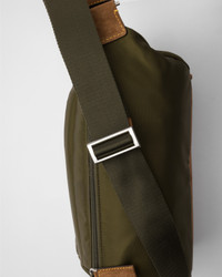 Suede details add a refined touch to this shoulder bag with sporty style. This accessory made of Re-Nylon combines a functional, versatile design with distinctive, iconic notes. For sustainable care to preserve the product's characteristics and reduce microfiber shedding, we recommend not washing the item too often. Let the product air out after every use and have it dry cleaned at a specialized ecological dry cleaners. - Product code: 2VH171_384_F041O_V_OBF - Adjustable woven nylon tape shoulder strap. Maximum length 110 cm - Minimum length: 60 cm - Enameled metal triangle logo on a flap - Zipper closure, flap and side-release buckle system - One external zipper pocket - Zipper pocket on the back - Re-Nylon lining - Imported Height: 12.5cm Width: 20cm Length: 10cm MATERIALS Main material: Recycled polyamide