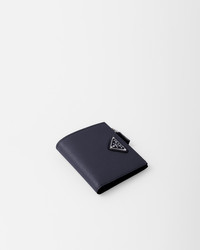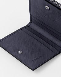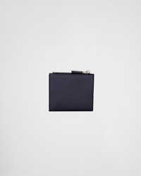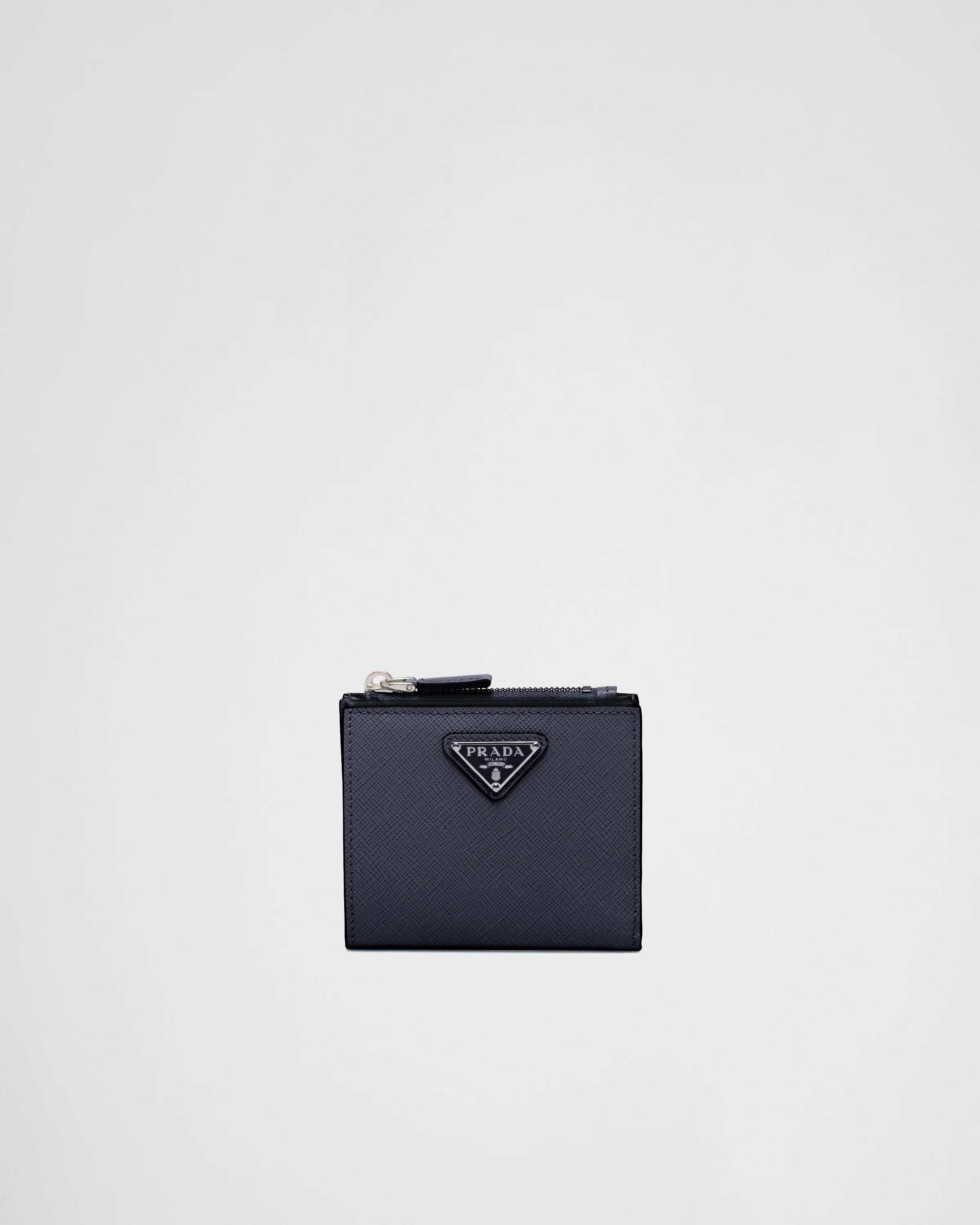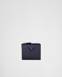 Sleek lines and the iconic texture of Saffiano leather characterize this wallet with the triangle logo on the front. The interior comes with pockets and compartments. - Product code: 2ML049_QHH_F0216 - Snap closure - Enameled metal triangle logo - Four card slots - One bill compartment - Two internal pockets - External coin pocket with zipper - Moire and Saffiano leather lining - Imported Height: 9cm Width: 10cm MATERIALS Main material: Calfskin