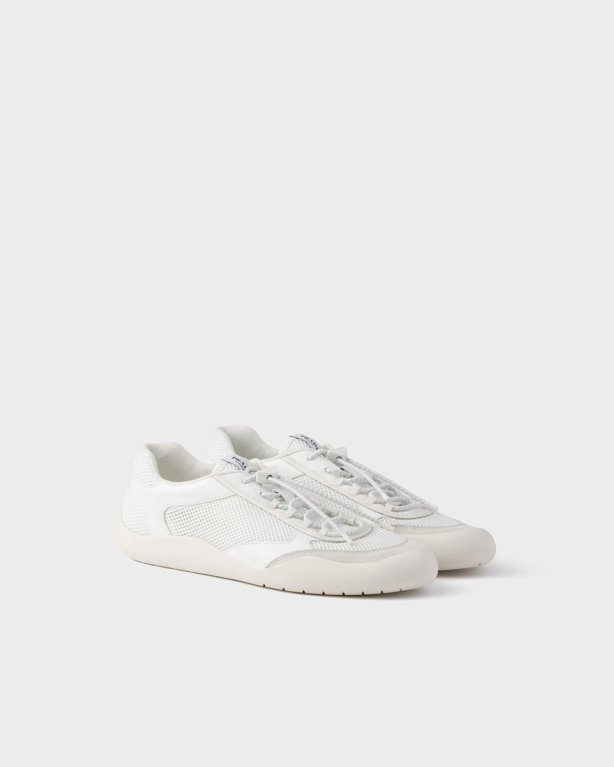 Light and flexible, designed for city energy, Speedrock sneakers embody a curious, contemporary and innovative spirit. The precise and functional design is made of mesh fabric with patent leather trim, while cord details evoke the dynamism of the outdoor world. Rubber soles complete the versatile shoe inspired by the dialog between nature and the city. - Product code: 2EE468_LZ7_F0009_F_G000 - With elasticized laces - Prada Milano fabric logo label on the tongue - Light rubber sole with shell construction that rises on the upper - Geometric tread - Sole height: 40 mm - Removable leather-covered insole - Imported MATERIALS Main material: Polyester