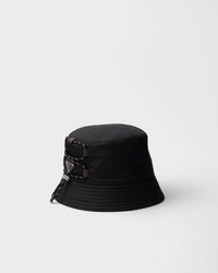 The urban design of the iconic bucket hat is enriched with details inspired by outdoor style. Technical details complete the Re-Nylon accessory decorated with the enameled metal triangle logo. For sustainable care to preserve the product's characteristics and reduce microfiber shedding, we recommend not washing the item too often. Let the product air out after every use and follow the washing instructions on the label. - Product code: 2HC137_2HE1_F0002 - Enameled metal triangle logo - Cotton lining - Imported MATERIALS Main material: Recycled polyamide