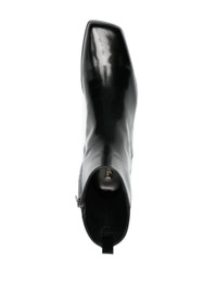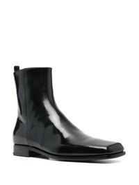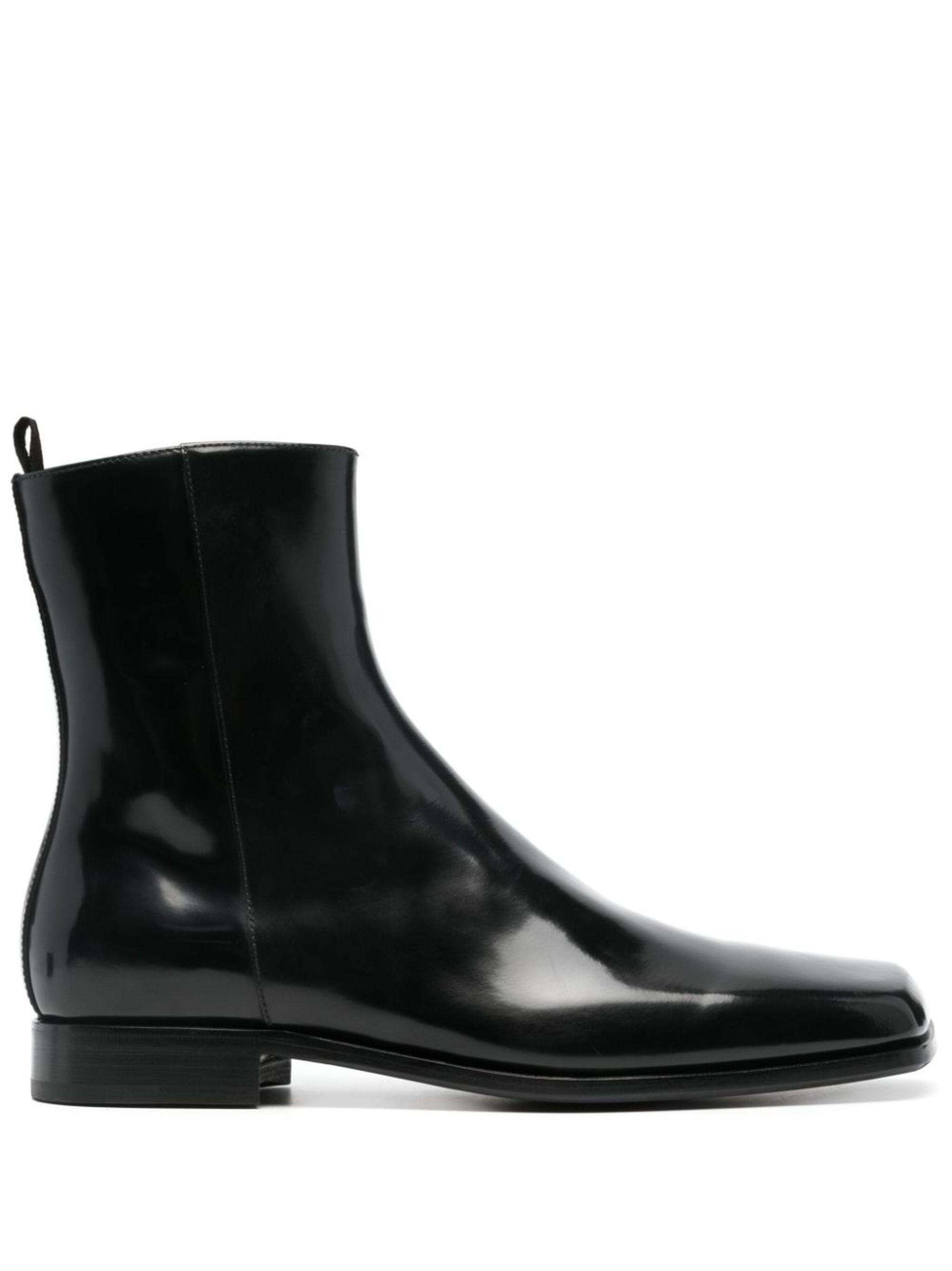 black calf leather brushed effect square toe ankle-length pull-tab at the heel branded leather insole leather lining low stacked heel leather outsole concealed side zip fastening Size & Fit Model Measurements: Bust: 0cm Height: 0cm Hips: 0cm Waist: 0cm CIRCUMFERENCE: 32cm HEEL: 2.5cm HEIGHT: 19cm Fabric and Care Designer Style ID: 2TA075FX000055 Designer Colour: F0002 NERO Composition: Sole: Rubber 100%, Calf leather 100%; Outer: Calf leather 100%; Lining: Calf leather 100%Made in Italy