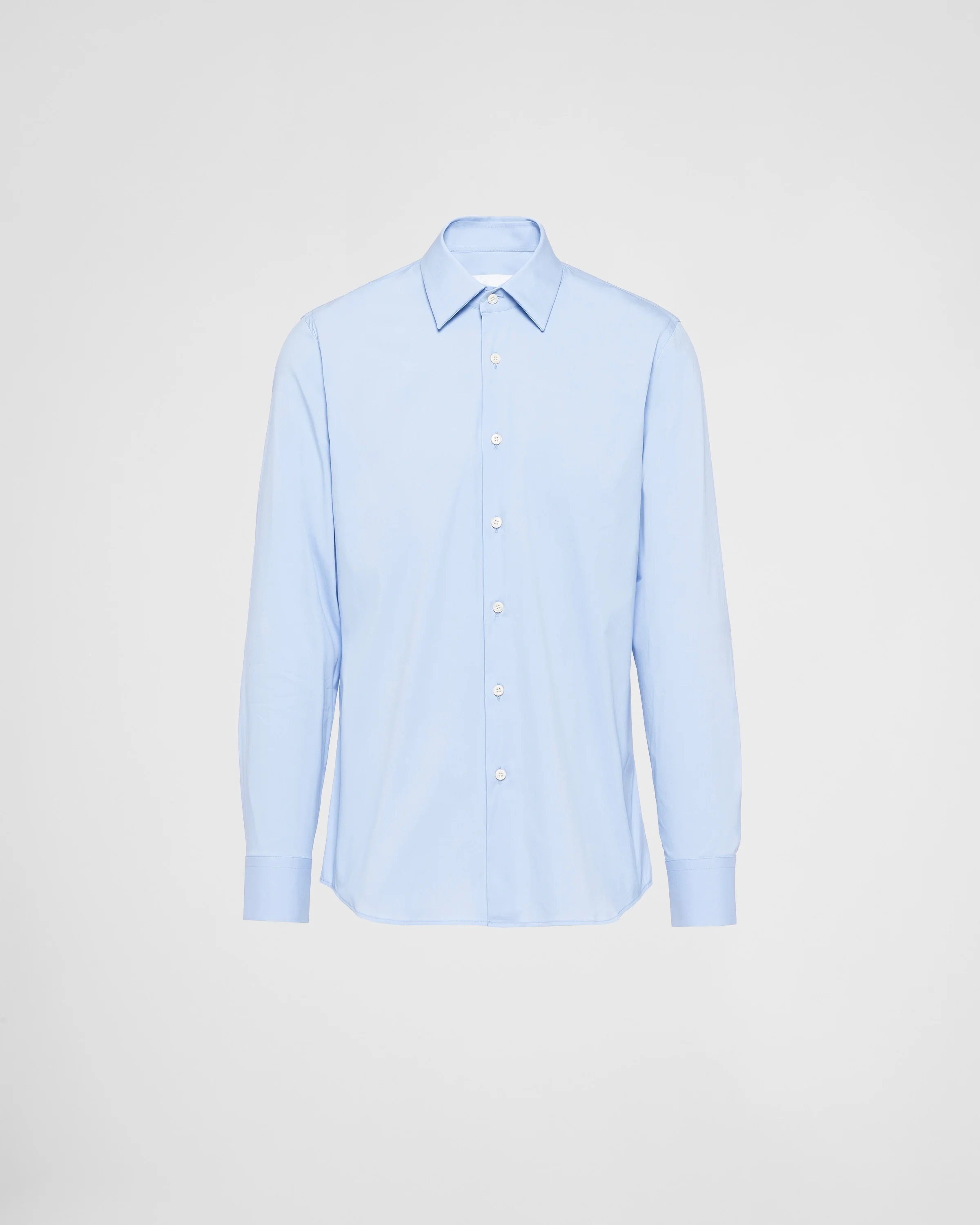 The long-sleeved shirt made of stretch poplin has a classic collar and slim fit. Mother-of-pearl buttons add a brilliant touch to the garment. - Product code: UCM608_10HT_F0012 - Slim fit - Classic collar - Rounded hem - Classic cuffs - Mother-of-pearl button closure - Imported - The model is 186 cm tall and wears a size 48 Height: 80cm MATERIALS Main material: 75% cotton 5% elastane 20% polyamide
