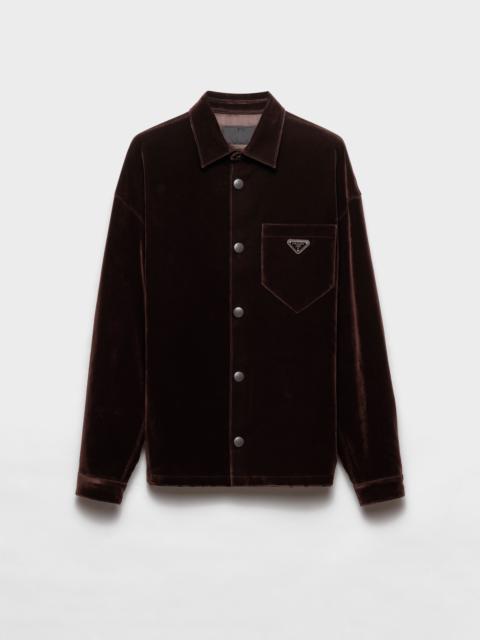 This sleek design blends a hyper-modern idea of tailoring with streetwear inspirations. This stretch cotton shirt with an oversized silhouette is characterized by the triangle logo that stands out on the front. - Product code: SC657_12HO_F0002_S_231 - Oversized fit - Classic collar - Classic breast pocket - Straight hem - Cuff with snap - Snap closure - Lined garment - Enameled metal triangle logo on the front - Imported - The model is 185 cm tall and wears a size 48 Height: 72cm MATERIALS Main material: 83% cotton 3% elastane 14% viscose