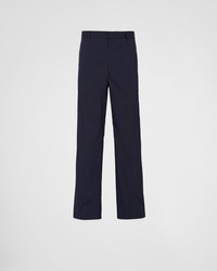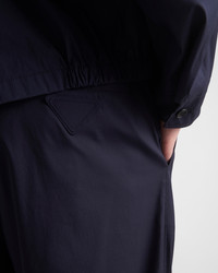 A classic menswear silhouette is reinterpreted with oversized lines in the design of these stretch poplin pants. The style with casual touches and sleek details is decorated with the iconic fabric triangle logo reinterpreted in a conceptual way. - Product code: SPH364_12VC_F0SVF_S_OOO - Wide leg fit - Drawstring waistband - Concealed zipper fly with hook - Angled front slash pockets - Back welt pockets with button - Hem width: 24 cm - Fabric triangle logo on the back - Imported - The model is 189 cm tall and wears a size 48 Height: 110cm MATERIALS Main material: 78% cotton 4% elastane 18% polyamide