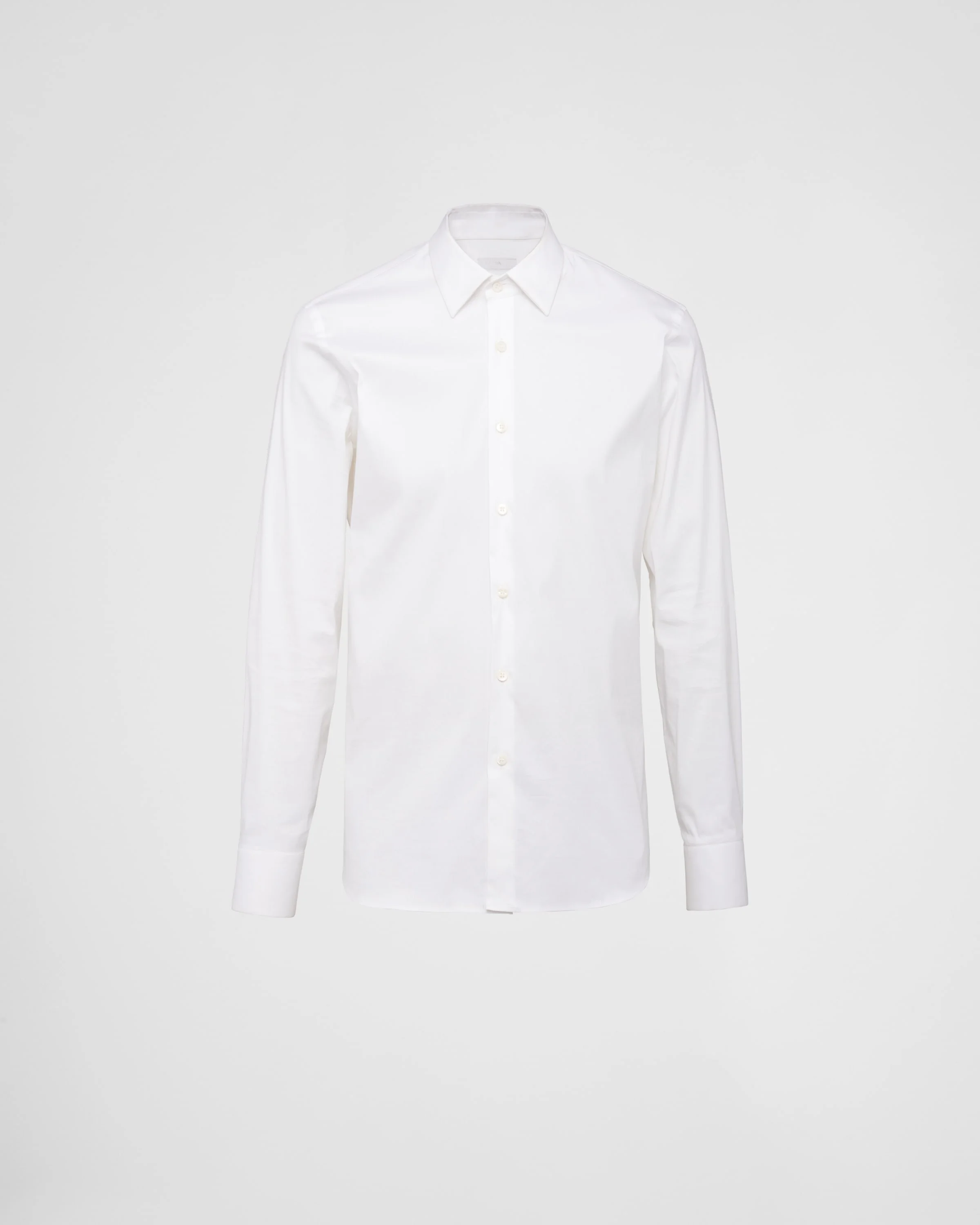 This shirt is crafted in stretch poplin with classic collar, long sleeves and mother-of-pearl button fastening on front. Darts on back for a slim fit, round hem. - Product code: UCM608_F62_F0009 - Slim fit - Long-sleeves - Stretch poplin - Classic collar - Darts on the back - Mother-of-pearl buttons - Rounded hem - 77% cotton, 20% polyamide, 3% elastane - Imported - The model is 189 cm tall and wears a size 48 Height: 80cm MATERIALS Main material: 77% Cotton 3% Elastane 20% Polyamide
