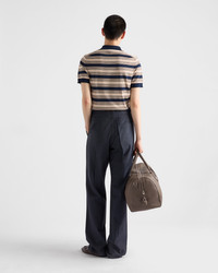 A striped motif with vintage allure brightens this cotton polo shirt characterized by its light silhouette and classic fit. The tonal triangle logo adds its signature touch to the refined garment. - Product code: UMF064_17O6_F0008_S_OOO - Plain knit - Regular fit - Polo collar - Regular shoulder - Ribbed knit hem - Fabric triangle logo - Sartorial label - Three-button front closure - Imported - The model is 189 cm tall and wears a size 48 Height: 66cm MATERIALS Main material: 100% cotton