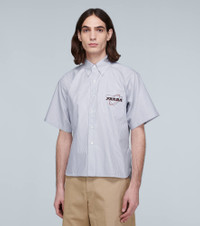 Sporting a slim striped pattern, Prada crafts this relaxed-fit shirt from 100% Oxford cotton, with a modernized logo on the chest pocket, the shirt is finished with a curved hem. Product Details - Made in Italy - Care instructions: machine wash at 30 degrees - Closure: buttoned front - Designer color name: Navy - Pockets: breast pocket - Material: 100% cotton - Item number: P00450759 Size & Fit - True to size - Short sizing - Designed for a loose fit - The model in the picture is 185cm-6'1" and wearing a size M