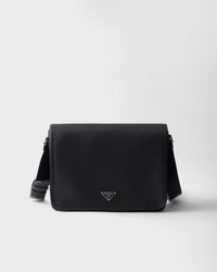 This refined and versatile shoulder bag with a sleek design is made of soft leather with a natural, textured finish. Sleek details emphasize the simple silhouette embellished with the iconic triangle logo. - Product code: 2VD074_2BBE_F0002_V_OOO - Adjustable shoulder strap with metal buckle. Maximum length 114 cm - Minimum length 102 cm - Maximum drop 53 cm - Minimum drop 48 cm - Enameled metal triangle logo on the flap - Zipper and magnet closure - Interior with zipper pocket, patch pocket and double patch pocket - Logo-print Re-Nylon lining - Imported Height: 23cm Width: 32cm Length: 11cm MATERIALS Main material: Calfskin
