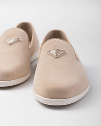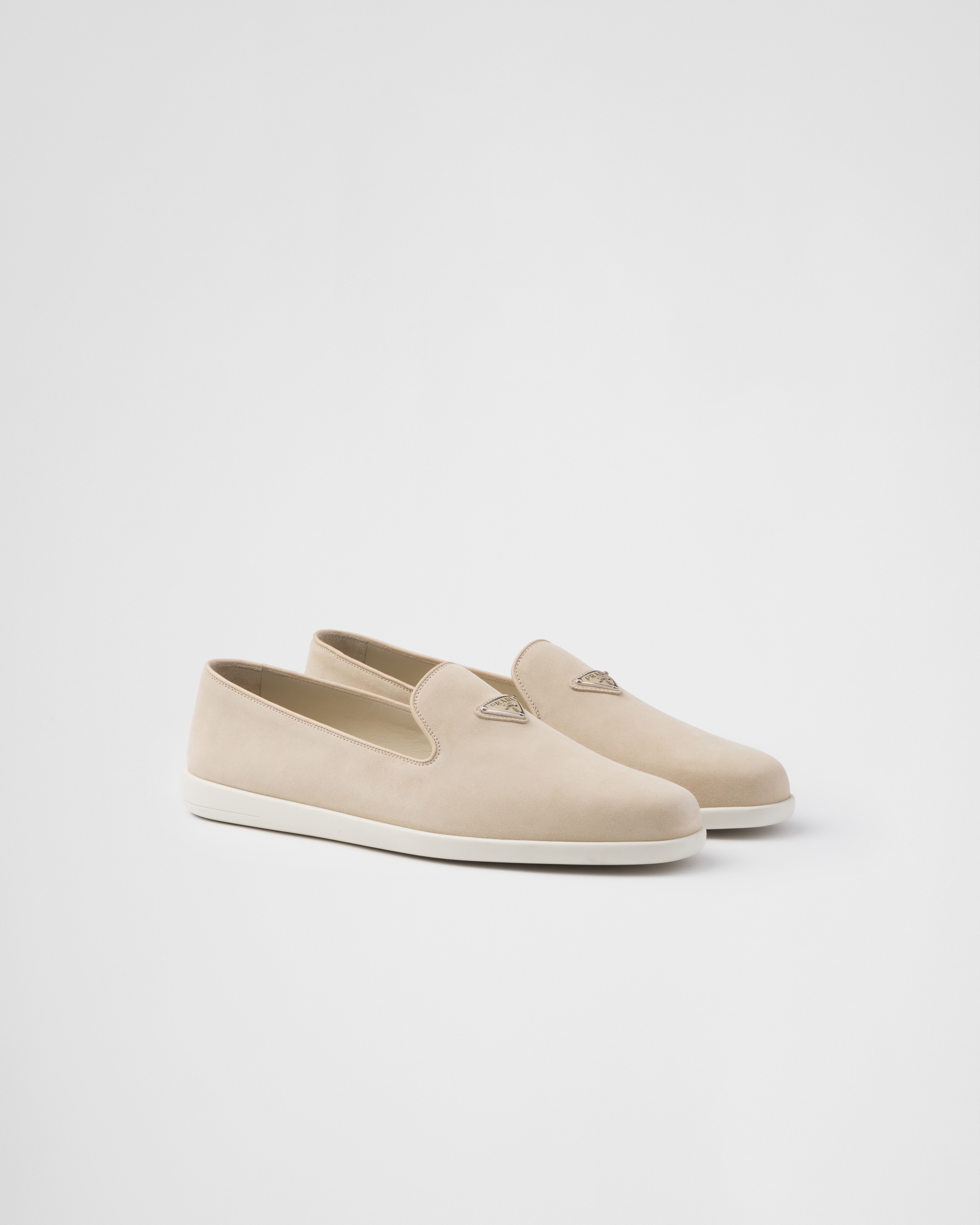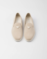 These suede slip-ons have a clean, modern design that combines a casual silhouette and simple but refined details. The style, characterized by a light rubber sole, is enriched by the iconic enameled metal triangle logo. - Product code: 2DG140_MG0_F0F24 - Enameled metal triangle logo on the upper - Light rubber sole - Removable leather-covered insole - Imported MATERIALS Leather