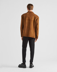 New volumes and silhouettes become archetypes in the Fall Water 2023 collection. Transformation is at the heart of the story, enhanced by a new aesthetic and textural approach. This jacket evokes the idea of the uniform through an extremely sophisticated version. Behind the classic look of suede is outstanding artisan workmanship: buffing by hand and a final waxed finish that gives the garment an unexpected look. - Product code: UPG374_1V97_F0005_S_232 - Lined garment - Regular fit - Front button closure - Notch lapels - Straight sleeves - Flap pockets - Leather triangle logo on the back - Waxed finish - Imported Height: 75cm MATERIALS Main material: Lambskin