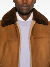 suede jacket Highlights - Tobacco brown - Lambskin - Front zip fastening - Shearling collar - Long sleeves - Press-stud fastening cuffs - Two side welt pockets - Full lining - Straight hem Composition Lining: Viscose 100%, Cashmere 100%, Recycled Polyester 55%, Polyester 45% Outer: Lambskin 100% SIZE & FIT Model measurements Height 6 ft 2 in(1.88 m) Bust/Chest 36.61 in(93 cm) Hips 35.82 in(91 cm) Waist 27.95 in(71 cm) FittingInformation Designed for a regular fit, allowing for a comfortably loose fit throughout the body Suede leather has a soft and treated construction offering some flexibility Washing instructions Specialist Cleaning