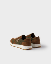 Prax sneakers combine style and comfort in one sporty design, defined by refined materials and details. The suede and Re-Nylon combination reflects the versatile and contemporary character of the style, completed with lightweight, two-tone soles. - Product code: 2EE455_LOW_F0M36_F_G000 - With laces - Enameled metal triangle logo - Prada Milano logo screen-printed on the tongue - Lightweight expanded rubber sole with lug tread - Sole height: 25 mm - Removable leather-covered insole - Imported MATERIALS Main material: Calfskin