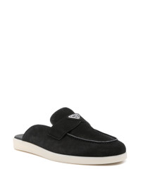 black rubber sole branded leather insole enamel triangle logo This piece comes complete with a protective dust bag. - Color: BLACK - Made in: Italy - Designer Style ID: 2DG125 F G001 103 F0632 Composition and care Lining Composition Calf Leather: 100.0%, Outer Composition Calf Suede: 100.0%, Sole Composition Rubber: 100.0%