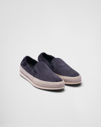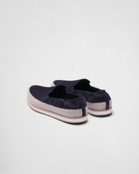 These suede slip-ons feature a sleek design that recalls comfort and freedom of movement. - Product code: 2DG126_054_F0008 - Light expanded rubber sole and tread with personalized design - Heel height: 18 mm - Removable leather-covered insole - Imported MATERIALS Leather