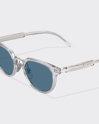 Acetate sunglasses with a contemporary style. The pantos-shaped frame is characterized by a refined metal bridge and rivets on the front that give it casual, elegant appeal. They are available in exclusive versions with transparent shades that reveal its metallic core engraved with the Prada lettering logo - Product code: SPR17Y_F2AZ_FE04D_C_049 - Acetate frame front in crystal - Frame compatible with graduated lenses - 100% UVA / UVB protection - Polarized crystal lenses - Adjustable nose pads suitable for any fit - Lens-nose-temple measurement: 49-22-140 mm - Article comes with dedicated packaging - Other available colors - Imported MATERIALS Acetate