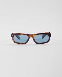 Acetate sunglasses with a sleek and refined aesthetic. The rectangular front features sophisticated triangular rivets, while the temples highlight the iconic metal element embellished with the Prada lettering logo. - Product code: SPRB11_F15W_FE04D_C_057 - Acetate frame front - Color: Classic Tortoiseshell - Frame compatible with graduated lenses - 100% UVA / UVB protection - Polarized crystal lenses - Standard Fit - Lens-nose-temple measurement: 57-17-145 mm - Article comes with dedicated packaging - Other colors available - Imported MATERIALS Acetate