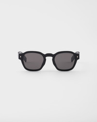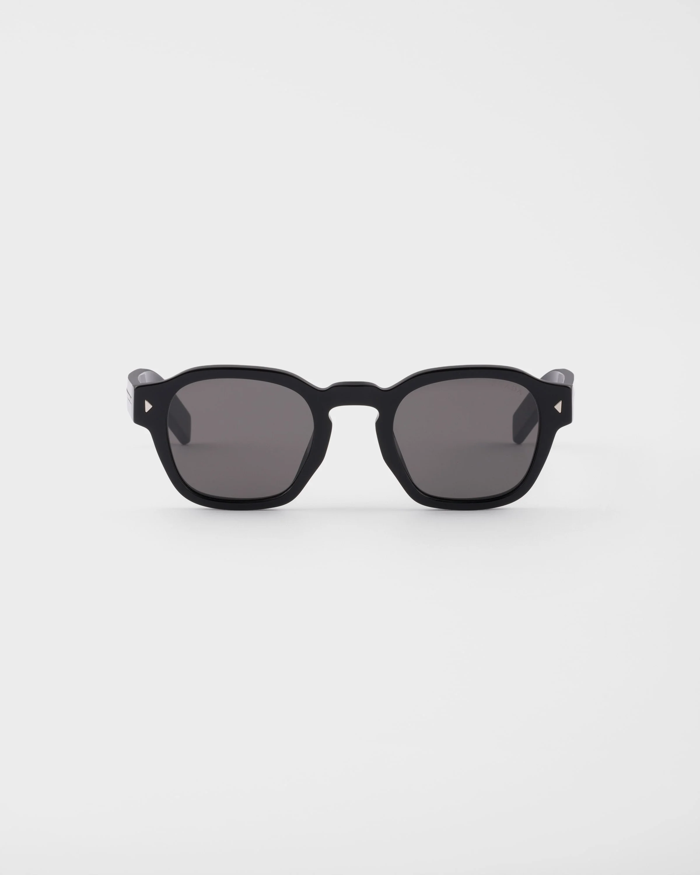 Acetate sunglasses with casual elegance. The pantos front is characterized by refined triangular rivets, while the temples are embellished with the iconic metal plaque featuring with the Prada lettering logo. - Product code: SPRA16_E16K_FE731_C_049 - Recycled bio-acetate frame front - Color: Black - Frame compatible with graduated lenses - 100% UVA / UVB protection - Crystal lenses - Standard Fit - Lens-nose-temple measurement: 49-24-145 mm - Article comes with dedicated packaging - Other colors available - Imported MATERIALS Acetate
