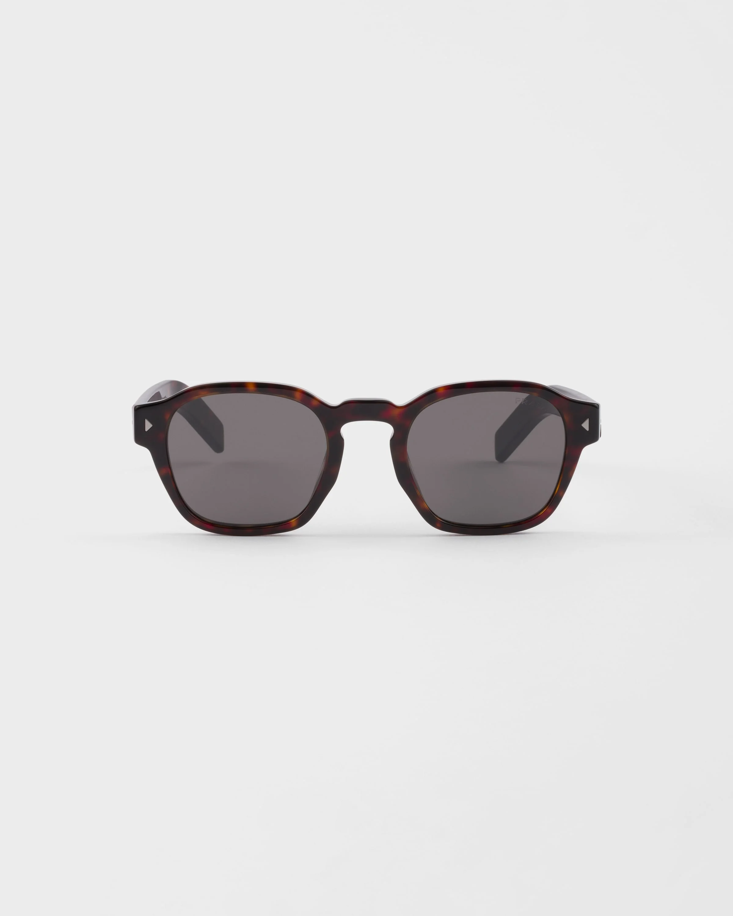 Acetate sunglasses with casual elegance. The pantos front is characterized by refined triangular rivets, while the temples are embellished with the iconic metal plaque featuring with the Prada lettering logo. - Product code: SPRA16_E17N_FE731_C_049 - Recycled bio-acetate frame front - Color: Briarwood Tortoiseshell - Frame compatible with graduated lenses - 100% UVA / UVB protection - Crystal lenses - Standard Fit - Lens-nose-temple measurement: 49-24-145 mm - Article comes with dedicated packaging - Other colors available - Imported MATERIALS Acetate