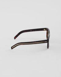 Acetate sunglasses with a contemporary, geometric design. The flat square front is defined by triangular metal rivets, while the temples are embellished with the iconic metal element decorated with the Prada lettering logo. - Product code: SPRB12_F17N_FE20G_C_055 - Acetate frame front - Color: Briarwood Tortoiseshell - Frame compatible with graduated lenses - 100% UVA / UVB protection - Polarized crystal lenses - Standard fit - Lens-nose-temple measurement: 55-19-145 mm - Article comes with dedicated packaging - Other colors available - Imported MATERIALS Acetate