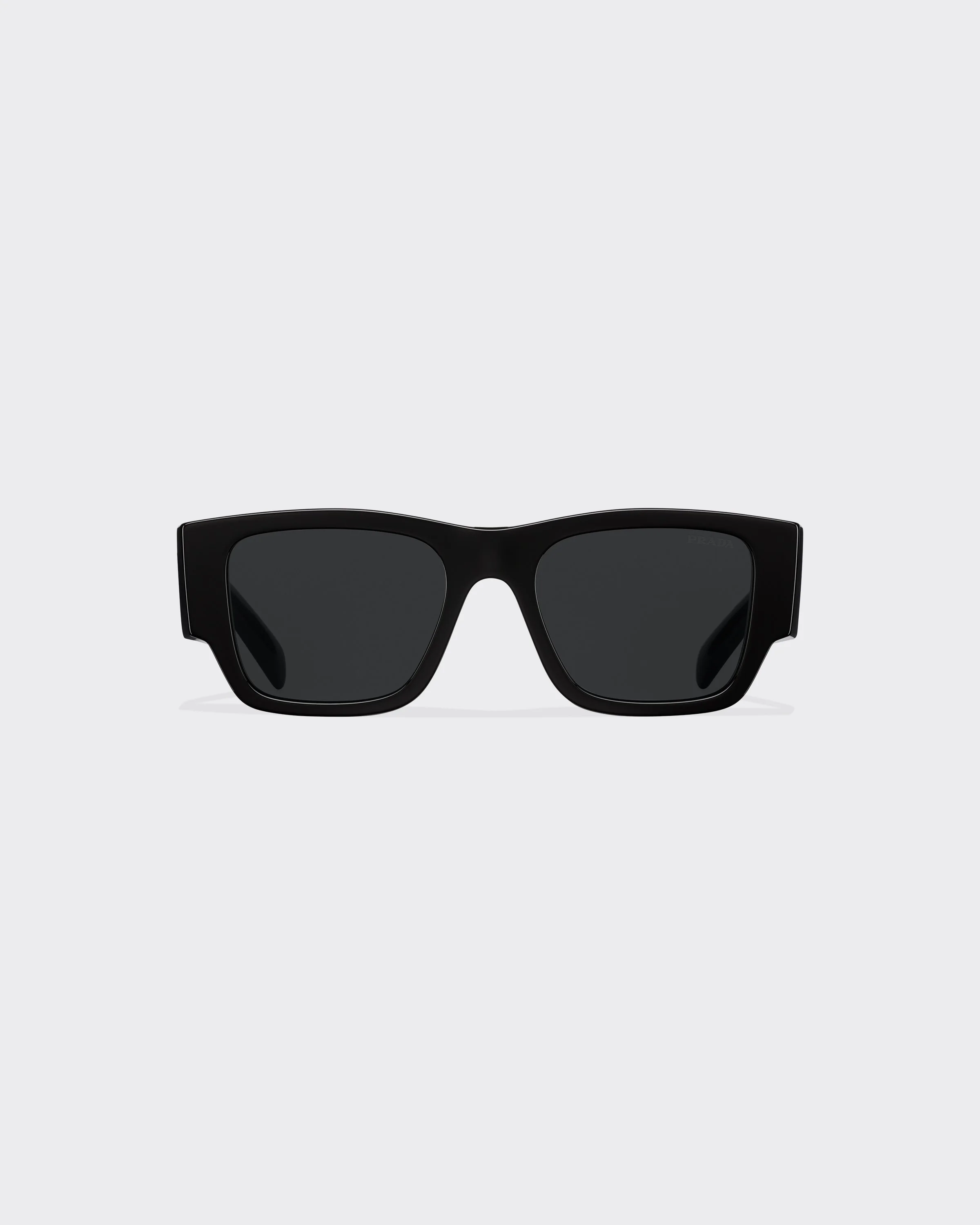 Acetate sunglasses with a bold, geometric aesthetic. The distinctive square frame is emphasized by its thick rims. The oversized two-tone temples are decorated with an exclusive metal plaque portraying Prada's iconic triangle logo. - Product code: SPR10Z_E1AB_F05S0_C_054 - Acetate frame front in Black - Frame compatible with graduated lenses - 100% UVA / UVB protection - Standard fit - Lens-nose-temple measurement: 54-20-140 mm - Article comes with dedicated packaging - Other available colors - Imported MATERIALS Acetate
