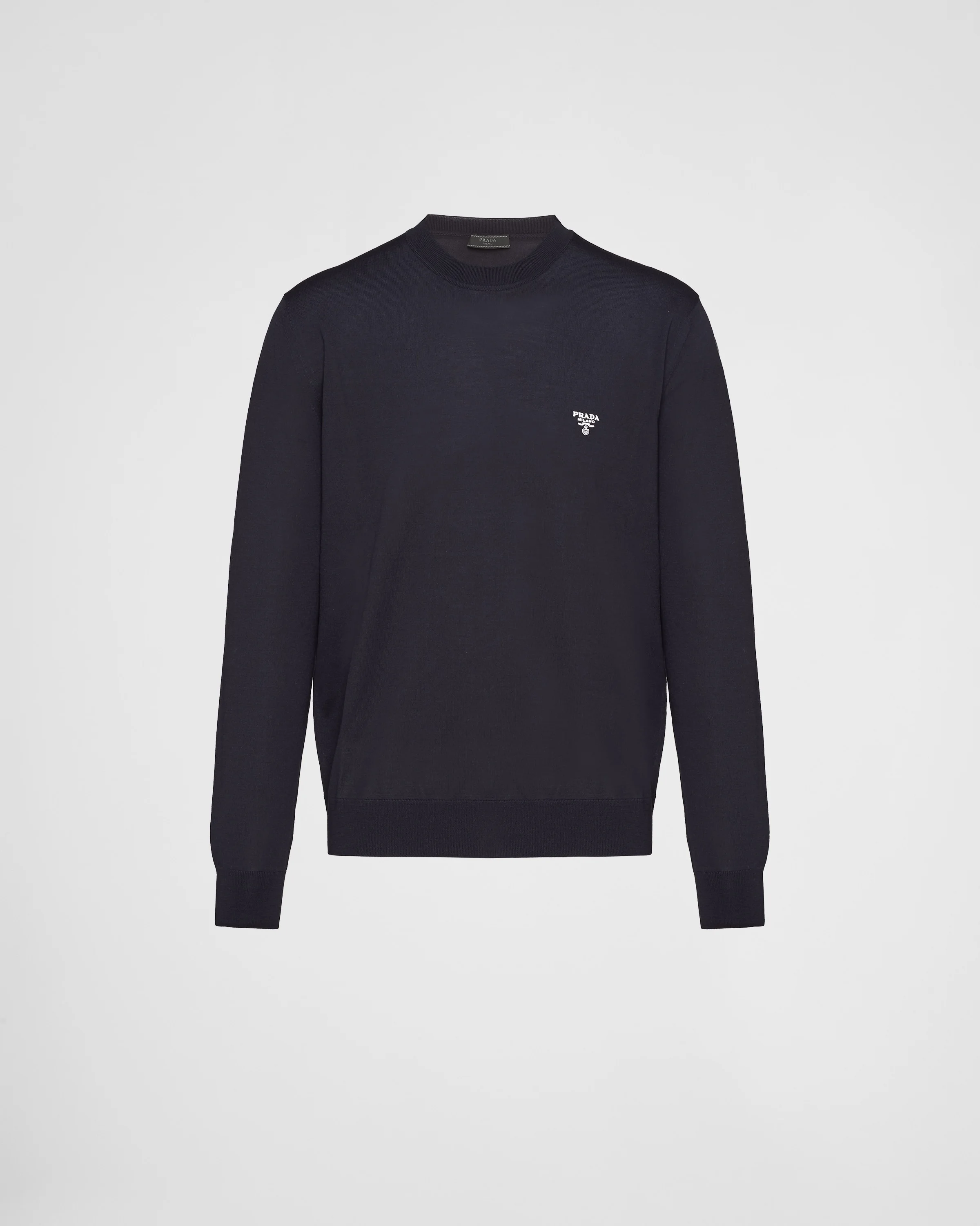 This crew-neck sweater, embellished with the embroidered logo, is made of superfine wool, a characteristic fabric of Prada's most iconic knitwear. Superfine wool, the most valuable in the world, stands out for its extreme lightness and the exceptional length of its fibers, which make it possible to maintain its original shape over time. - Product code: UMB264_1ZLE_F0008_S_212 - Plain stitch knit - Regular fit - Ribbed knit crew neck - Regular shoulder - Ribbed knit cuffs and hem - Embroidered logo - Imported - The model is 188 cm tall and wears a size 48 Height: 66cm MATERIALS Main material: 100% virgin wool