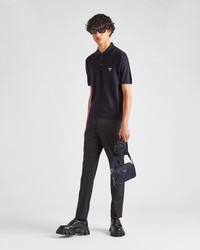 This short-sleeved polo shirt, embellished with the embroidered logo, is made of superfine wool, a characteristic fabric of Prada's most iconic knitwear. Superfine wool, the most valuable in the world, stands out for its extreme lightness and the exceptional length of its fibers, which make it possible to maintain its original shape over time. - Product code: UMB267_1ZLE_F0008_S_212 - Plain stitch knit - Regular fit - Ribbed knit collar - Regular shoulder - Ribbed knit cuffs and hem - Embroidered logo - Front button closure - Imported - The model is 189 cm tall and wears a size 48 Height: 66cm MATERIALS Main material: 100% virgin wool