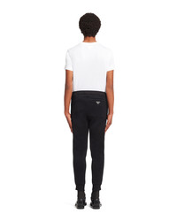 These sporty fleece sweatpants are defined by the strong contrast of materials that reflect the hybrid concept, a characteristic of Prada collections. The garment, characterized by the historic metal triangle logo, is accented by a side nylon band. Nylon, a functional material and vehicle of experimentation, links old and new, luxury and simplicity. This product does not contribute to the SEA BEYOND educational program. - Product code: UJP180_1YFJ_F0806_S_212 - Skinny fit - Waistband with internal drawstring - Enameled metal triangle logo - Nylon side band - Length: 98 cm, Size: M - Back pocket with zipper - Small pocket on the right leg with Re-Nylon logo - Imported Height: 98cm MATERIALS Cotton