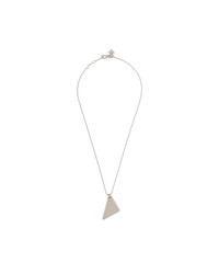 Prada's iconic triangle logo transforms into a double pendant that decorates this chain necklace, creating a dynamic play of layering and texture. Iconic and essential in form, the triangle is the protagonist of a new line of jewelry made of 925 sterling silver. - Product code: 2JC835_2DTO_F0118 - 925 sterling silver - Palladium finish - Triangle logo - Lobster claw clasp - Adjustable size - Imported Width: 68cm MATERIALS 925 Silver