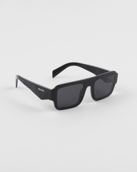 Acetate sunglasses with a bold attitude. The large squared front with clean lines is combined with faceted temples created using a distinctive three-dimensional process and embellished with the Prada lettering logo. - Product code: SPRA05_E16K_FE08Z_C_053 - Recycled bio-acetate frame front - Color: Black - Frame not compatible with graduated lenses - 100% UVA / UVB protection - Standard fit - Lens-nose-temple measurements: 53-20-145 mm - Article comes with dedicated packaging - Other available colors - Imported MATERIALS Acetate