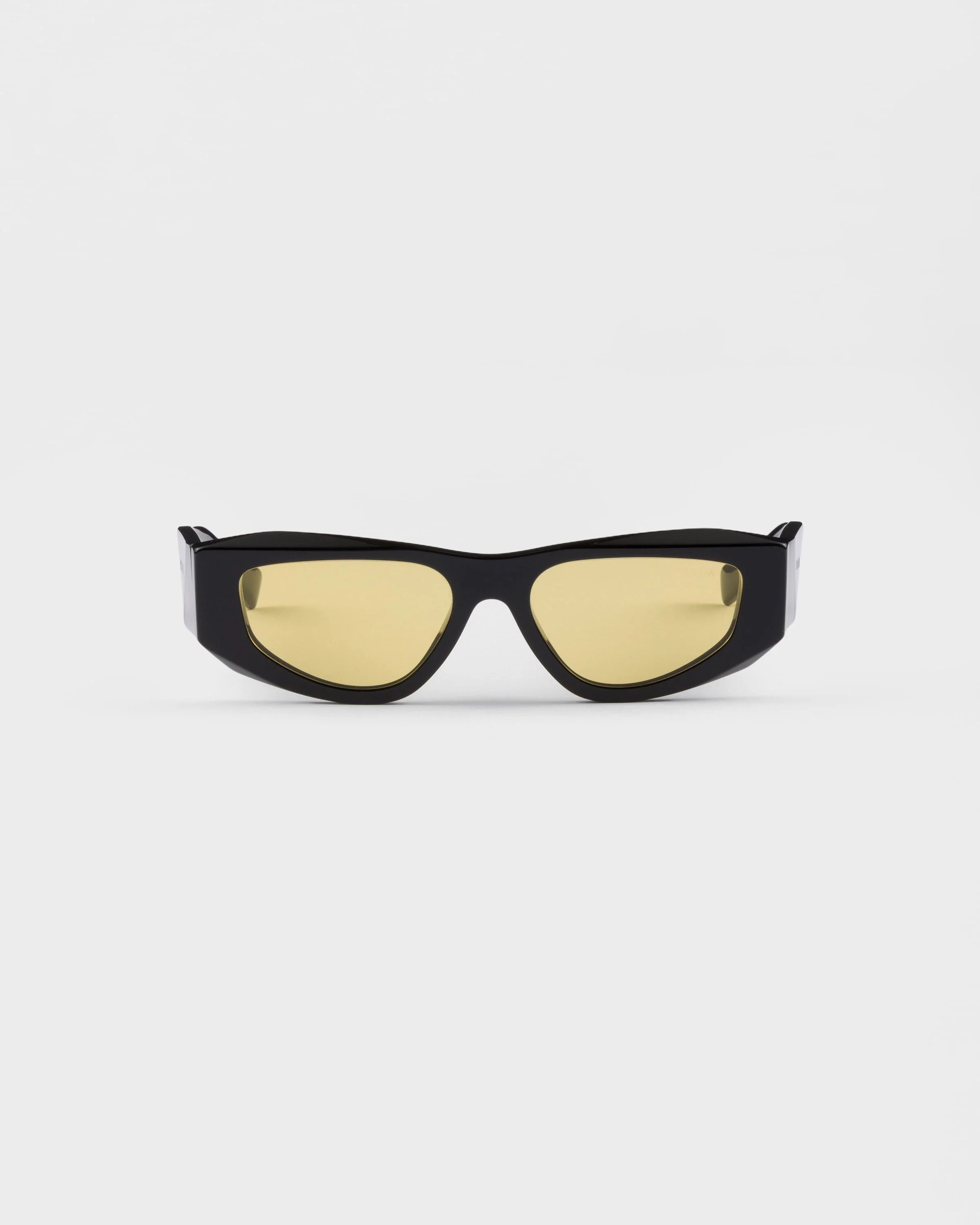 Acetate sunglasses with a contemporary aesthetic. The geometric, rectangular front features thick rims, while the faceted temples are characterized by the three-dimensional workmanship embellished with the Prada lettering logo. - Product code: SPRB19_E16K_FE455_C_052 - Acetate frame front - Color: Black - Frame not compatible with graduated lenses - 100% UVA / UVB protection - Standard fit - Lens-nose-temple measurements: 52-17-145 mm - Article comes with dedicated packaging - Other colors available - Imported MATERIALS Acetate