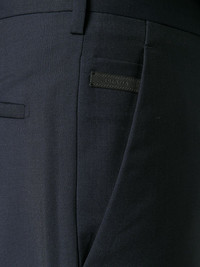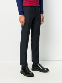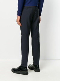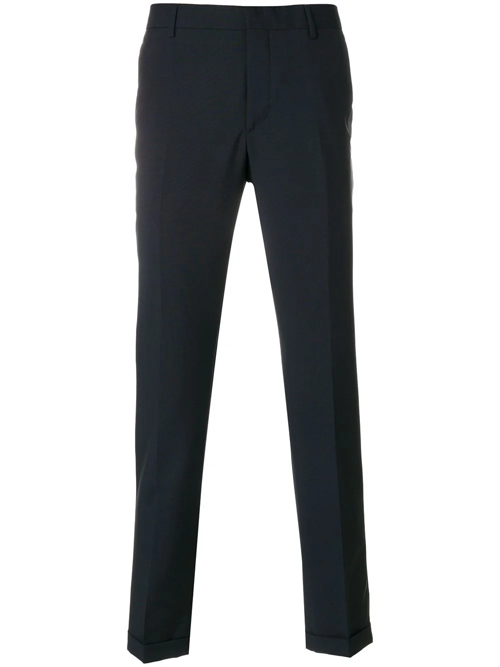 tailored trousers The contemporary art inspired Prada has a deep enduring heritage that cements the brands legendary status. Founded in 1913 by Mario Prada, the brand is known for producing timeless items with traditional Milanese craftsmanship. Expect to see outerwear with a utilitarian twist and vibrant accessories that have amassed a cult following. Expertly constructed from wool, mohair and cotton blend these tailored trousers from Prada feature a waistband with belt loops, a hook & eye fastening, a zip fastening, two front pockets, rear welt pockets and a turned up hem. Composition Outer: Cotton 100%, Wool 84%, Mohair 16% Lining: Viscose 100% SIZE & FIT Model measurements Height 6 ft 2 in(1.89 m) Bust/Chest 34.64 in(88 cm) Hips 35.43 in(90 cm) Waist 27.55 in(70 cm) Washing instructions Dry Clean Only