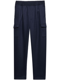 tapered cargo trousers Highlights - Midnight blue - Virgin wool-cashmere blend - Felted - Triangle logo - Elasticated waistband with internal drawstring - Tapered leg - Two side slit pockets - Two side cargo pockets - Two rear welt pockets Composition Outer: Virgin Wool 48%, Cashmere 48%, Polyamide 4% Lining: Cotton 100%
