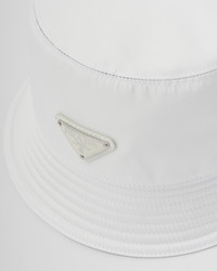 Adorned with the iconic enameled metal triangle logo, this bucket hat is made from Re-Nylon, a regenerated nylon yarn produced through a process of recycling and purifying plastics recovered from the ocean, as well as fishing nets and textile fibers. For sustainable care to preserve the product's characteristics and reduce microfiber shedding, we recommend not washing the item too often. Let the product air out after every use and have it dry cleaned at a specialized ecological dry cleaners. - 商品货号: 2HC137_2DMI_F0009 - Enameled metal triangle logo - Cotton lining - 产品标签信息 MATERIALS Fabric