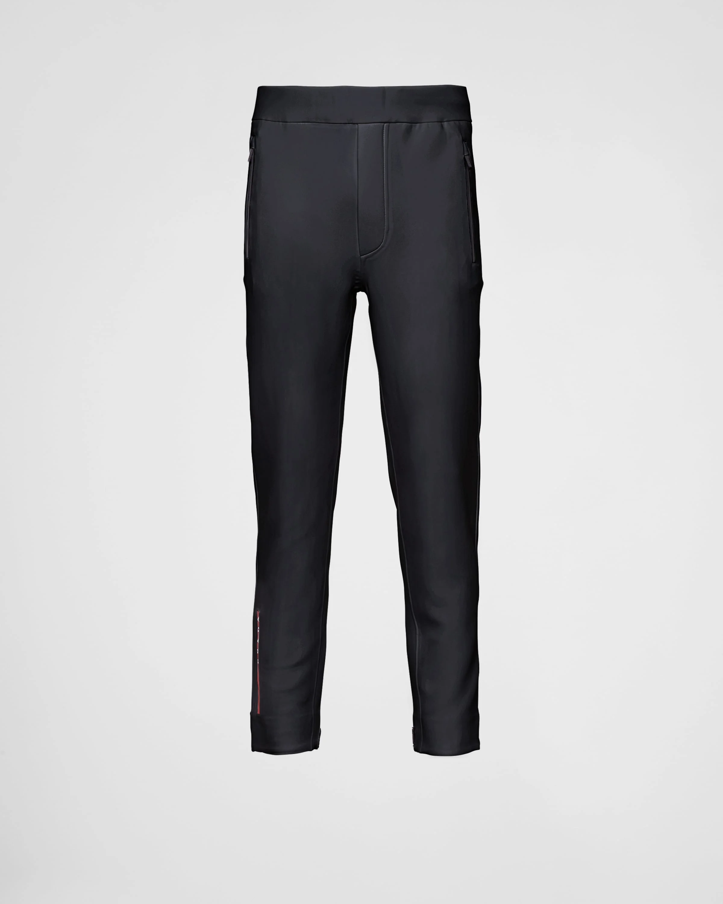 These technical fabric pants with a minimalist design and high functionality have heat-sealed taped seams. The jogger style with slim lines is defined by the cotton fleece fabric on the hem and is decorated with the iconic Linea Rossa logo. - Product code: SJP305_10UD_F0002_S_202 - Slim fit - Waistband with internal drawstring - Fleece fabric hem - Hook-and-loop strap on the hem - Latex logo badge - Heat-sealed taped seams - Length: 98 cm, Size: M - Zipper pockets - Imported Height: 98cm MATERIALS Main material: 18% elastane 82% recycled polyester