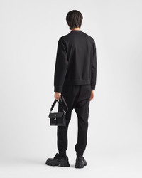 These sophisticated, elegant technical fleece pants are characterized by the tonal trim and a sporty nylon utility pocket inspired by cargo pants. The enameled metal triangle logo decorates the garment. - Product code: UJP175_1YSZ_F0806_S_212 - Skinny fit - Waistband with inner drawstring - Enameled metal triangle logo - Nylon zipper pocket on the leg - Length: 98 cm; Size: M - Zipper back pocket - Imported - The model is 185 cm tall and wears a size 48 Height: 98cm MATERIALS Main material: 5% elastane 30% polyamide 65% viscose
