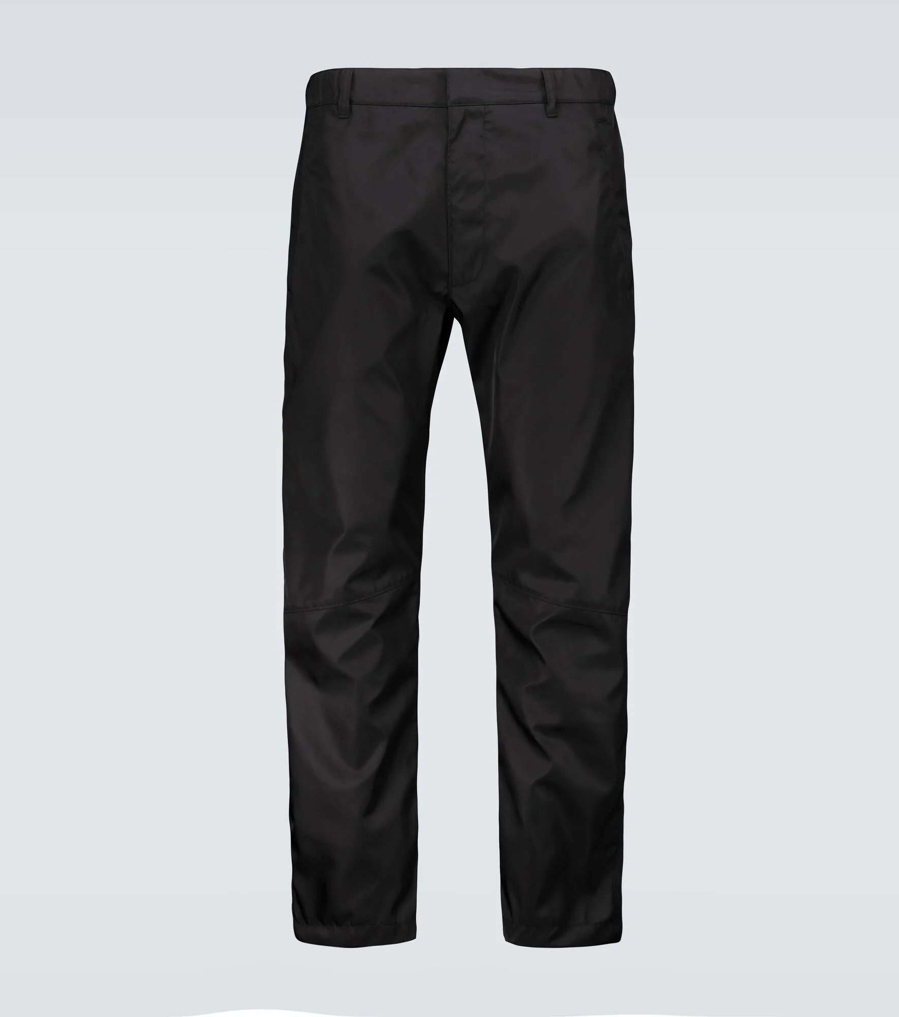 Made from a technical nylon fabric, these black pants from Prada have an elasticated waistband and drawstring cuffs for a modern, sporty edge. Product Details - Closure: zipper fly, button and hook fastenings - Drawstring cuffs - Designer color name: Black - Details: 100% calf leather - Pockets: side slit pockets, back pockets - Material: 100% polyamide - Pocket lining: 100% cotton - Care instructions: hand wash - Item number: P00487010 Size & Fit - True to size - Non-stretchy fabric - Slim-leg - High-waisted - The model in the picture is 185cm-6'1" and wearing a size IT 50