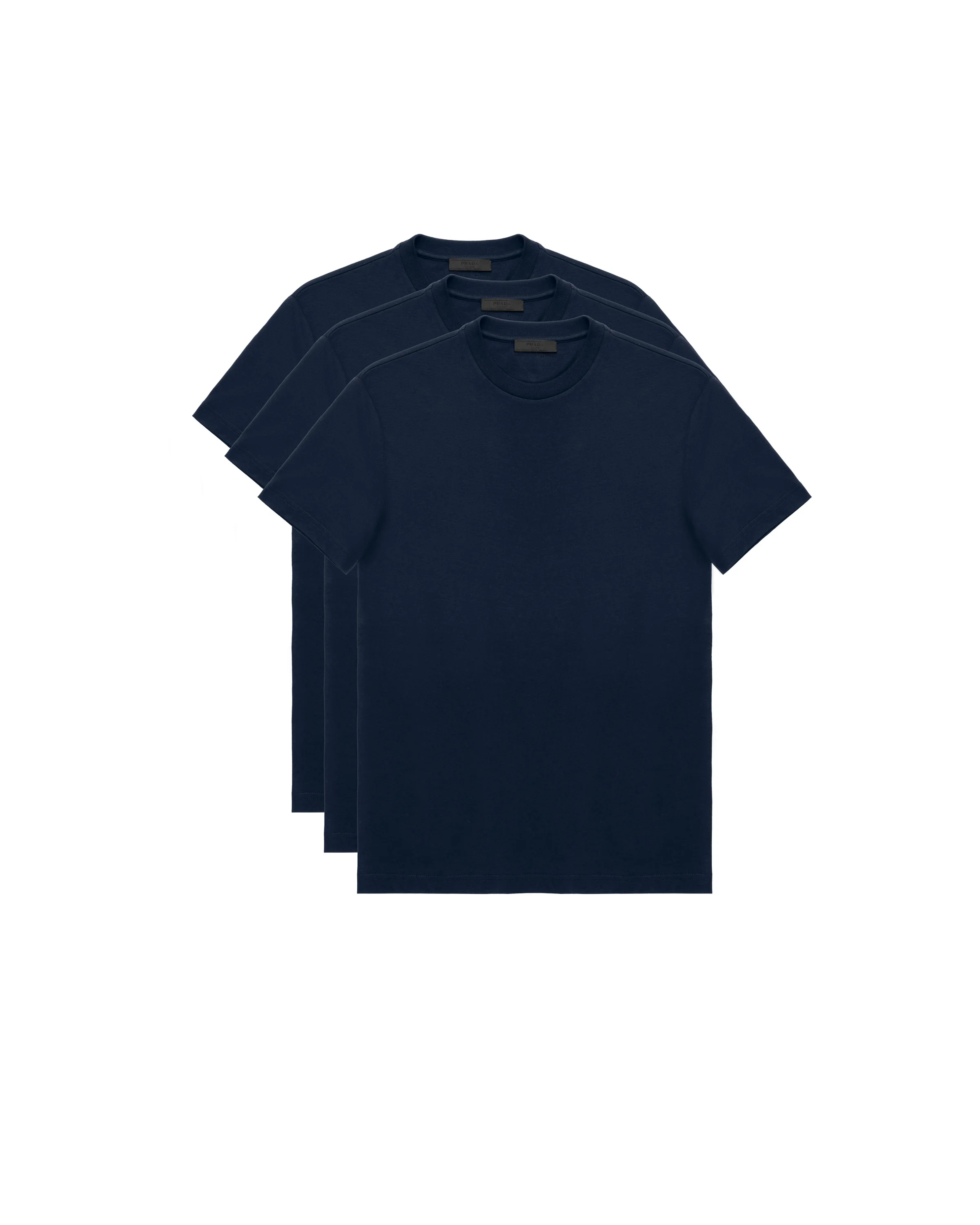 A plain cotton tee is a timeless staple piece. Cut from smooth jersey in a slim fit, these t-shirts come in a pack of three. They are embellished with the Prada triangle logo at the back. - Product code: UJM492_ILK_F0124_S_181 - 3-pack - Slim fit - Ribbed crew-neck - Short sleeves - Prada triangle logo label at the back of the neck - 100% cotton - Slim Fit - Fits slightly small to size - We recommend buying one size larger - Please note, intimates can only be returned in new condition. Items such as underwear, lingerie and tights should be unworn, in their original packaging, with all labels attached - Imported Height: 68cm MATERIALS Cotton