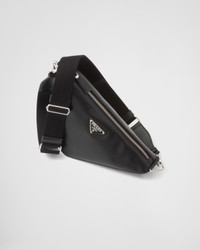 This bag made of soft leather innovatively reinvents the brand's iconic geometric shape, transforming it into a sporty, versatile design. Provided with a removable nylon and leather shoulder strap, the accessory can be worn in various ways and is decorated with the enameled metal triangle logo. - Produktcode: 2VH155_ASK_F0002_V_OLO - Detachable, adjustable nylon tape and leather shoulder strap - Enameled metal triangle logo on the front - Zipper closure - Interior with patch pocket - Logo-print Re-Nylon lining - Höhe: 22cm - Breite: 30cm - Länge: 11cm - Eingeführt