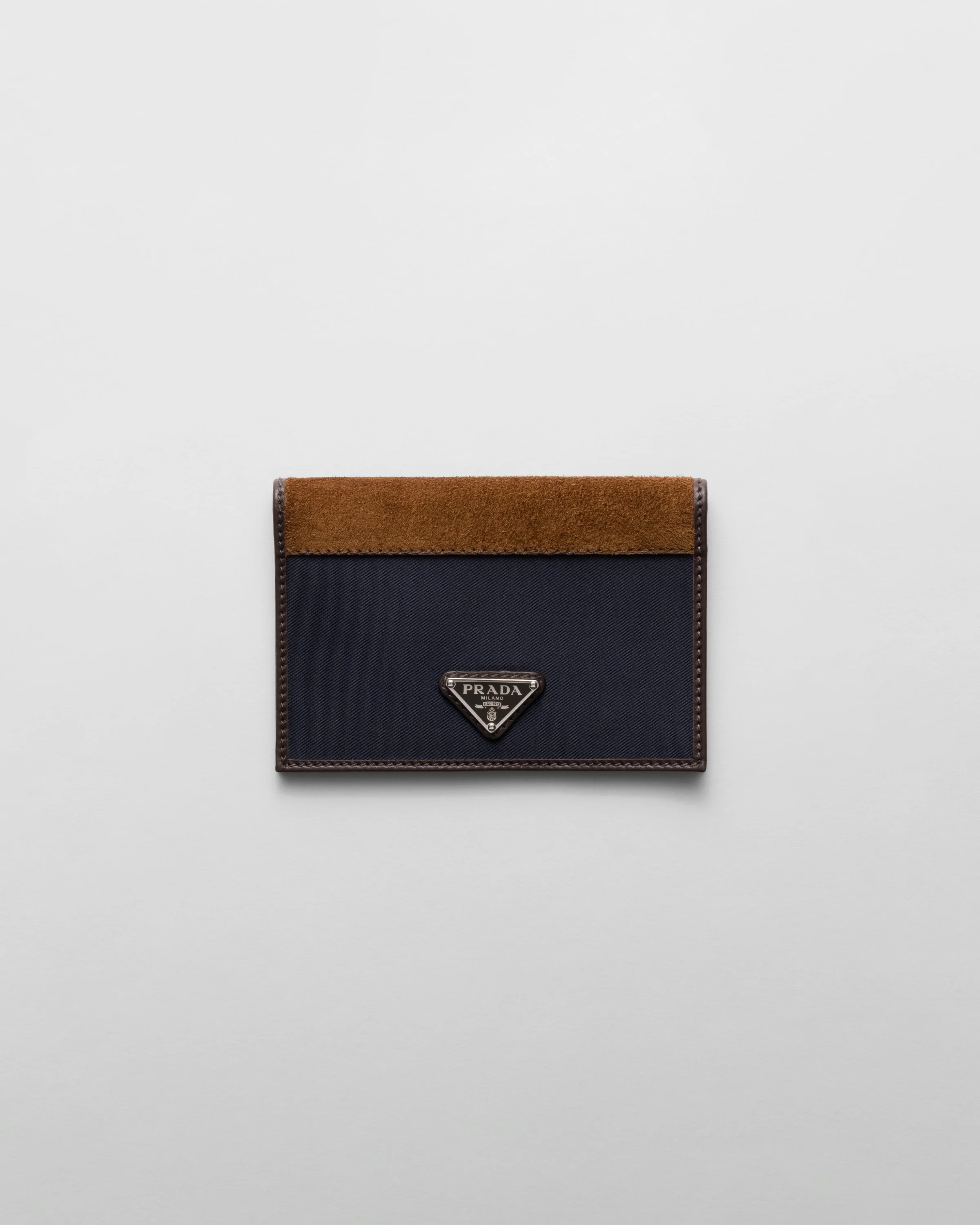 The sleek design of this passport holder combines the classic elegance of leather and the modern and functional character of Re-Nylon. The accessory, which comes with several pockets and card slots, is decorated with the emblematic triangle logo. This product does not contribute to the SEA BEYOND educational program. - Product code: 2MV017_384_F0C1B - Enameled metal triangle logo - Three card slots - Three document pockets - Moire and leather lining - Imported Height: 14cm Width: 9.5cm MATERIALS Main material: Recycled polyamide