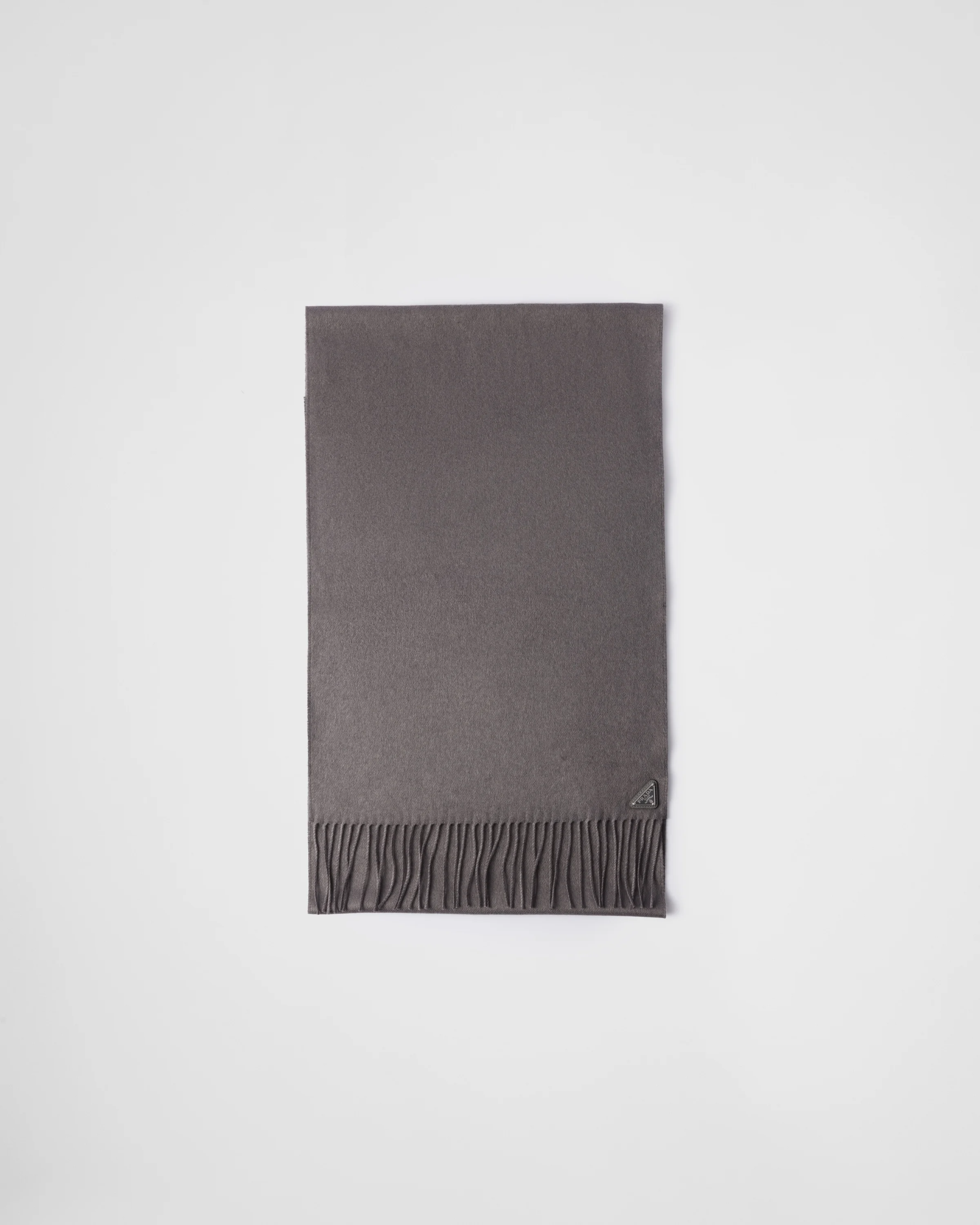 The sleek design of this scarf is distinguished by its sophisticated, classic allure and the soft, luxurious touch of the silk and cashmere blend yarn. - Product code: 2FS065_2COP_F0K44 - Enameled metal triangle logo - Fringe on two sides - 51% silk 49% cashmere - Imported Height: 170cm Width: 35cm MATERIALS Main material: Silk cashmere