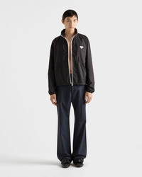 This Re-Nylon jacket with a sporty design and contemporary style is characterized by a functional silhouette defined by the contrasting zipper that adds an interesting graphic detail to the garment. For sustainable care to preserve the product's characteristics and reduce microfiber shedding, we recommend not washing the item too often. Let the product air out after every use and have it dry cleaned at a specialized ecological dry cleaners. - Product code: SGC832_1WQ9_F0967_S_OOO - Regular fit - Stand-up collar and stowaway hood - Straight sleeve - Zipper closure - Pouch pockets - Elasticized cuff - Drop shoulder - Straight hem - Elastic drawstring - Lined - Enameled metal triangle logo on front - The fabric is made with regenerated yarn obtained from recycled plastic materials collected in the ocean - Imported - The model is 188 cm tall and wears a size 48 Height: 66cm MATERIALS Main material: 100% recycled polyamide