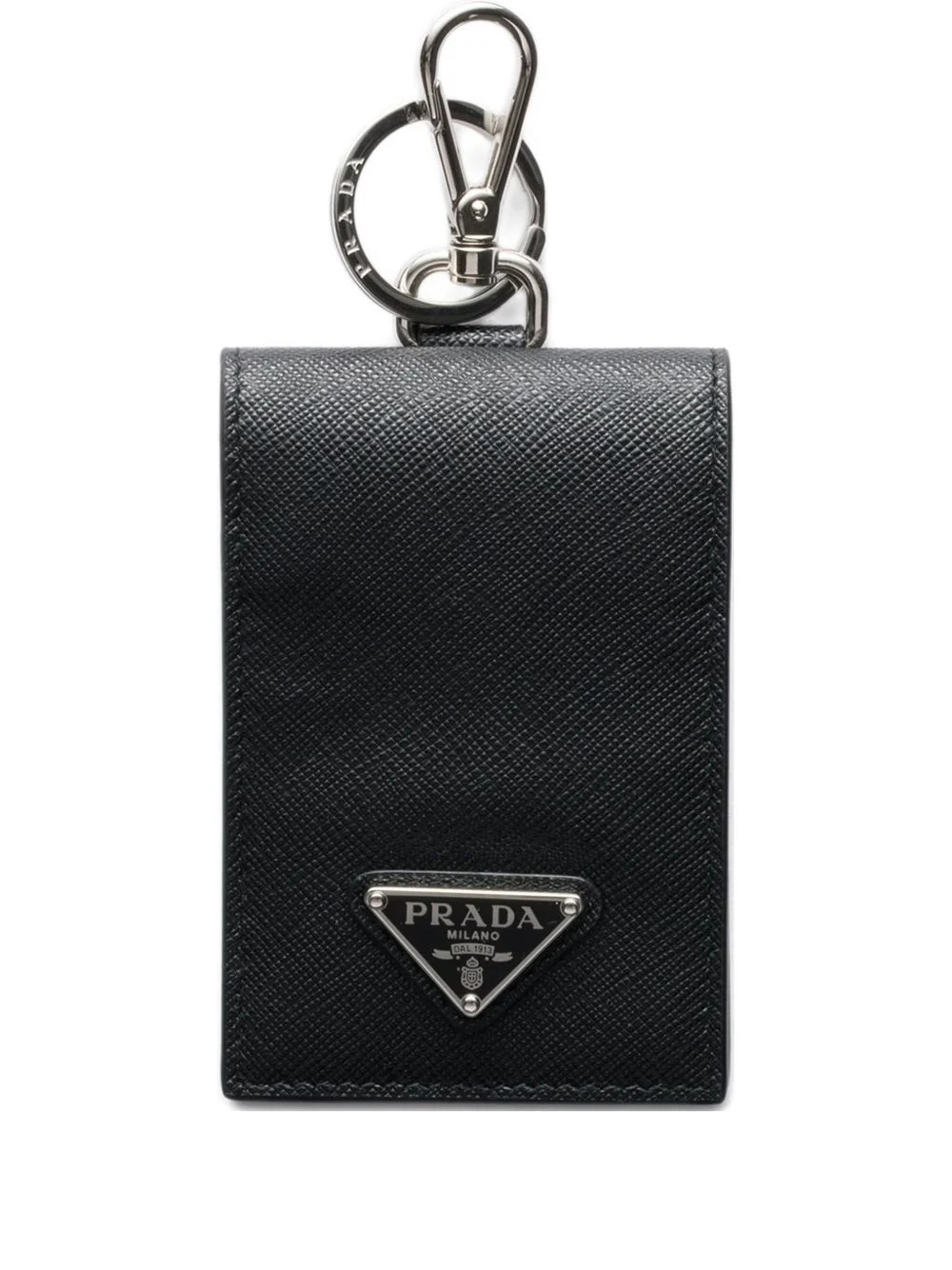 triangle-logo leather card holder Highlights - Black - Triangle logo - Snap closure - Six card slots - Leather - Keyring Composition Outer: CALFSKIN 100% SIZE & FIT Measurement LENGTH 2.75 in(7 cm) WIDTH 4.33 in(11 cm)