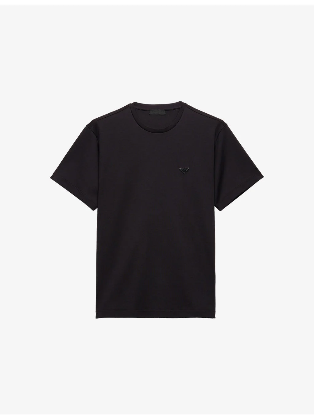 PRODUCT DETAILS - Prada cotton-jersey T-shirt - 100% cotton - Regular fit, crew neck, ribbed trim at neck, short sleeves, logo plaque at chest - Machine wash cold - Made in Italy - Model is 6ft 2in/1.88m and wears a size medium - Lightweight, slight stretch Ref: R04509413