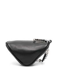 triangular leather pouch Prada embodies the shape of its beloved logo plaque in this leather pouch design, echoing the importance of the motif by featuring it front and centre for an esteemed branded touch. Composition Outer: Calf Leather 100% SIZE & FIT Measurement DEPTH 1.96 in(5 cm) LENGTH 2.75 in(7 cm) STRAP 17.71 in(45 cm) WIDTH 5.11 in(13 cm)