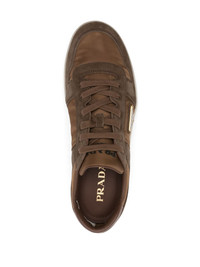 Downtown sneakers Highlights - Earth brown - Panelled design - Suede panelling - Leather trim - Front lace-up fastening - Branded heel counter - Logo-embossed tongue - Enamel triangle logo - Round toe - Branded insole - Leather lining - Flat rubber sole Composition Outer: Calf Suede 100%, Calf Leather 100%, Fabric 100% Lining: Calf Leather 100% Sole: Rubber 100% SIZE & FIT Measurement HEEL 1.18 in(3 cm) Sole height 0.98 in(2.5 cm)