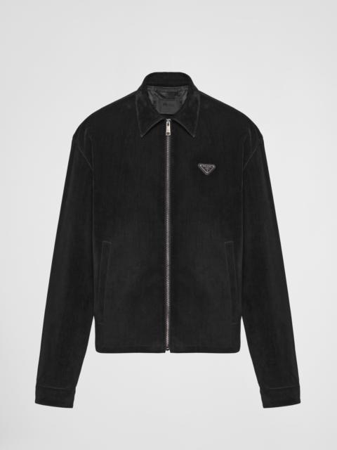 The dualism between formal and casual and between sporty elements and classic tailoring. This blouson jacket made of cotton velvet reinterprets an iconic Prada design, embellishing it with lifestyle elements like the front zipper. - Product code: SGB999_12HO_F0192_S_221 - Oversized fit - Shirt collar - Straight sleeve - Zipper closure - Welt pockets - Cuff with button - Wide shoulder - Straight hem - Lined - Enameled metal triangle logo on the front - Imported - The model is 189 cm tall and wears a size 48 Height: 62cm MATERIALS Main material: 83% Cotton 3% Elastane 14% Viscose