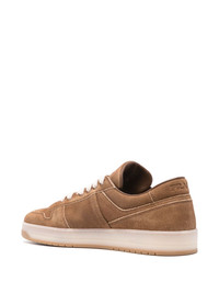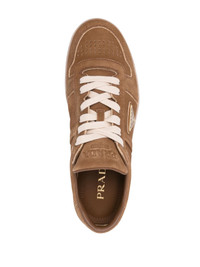 Downtown sneakers Highlights - Cannella brown - Calf suede - Panelled design - Round toe - Perforated toebox - Enamel triangle logo at the side - Logo-debossed tongue - Branded heel counter - Padded ankle - Branded leather insole - Logo at the sole - Flat rubber sole - Front lace-up fastening - This piece comes complete with a protective dust bag. Composition Lining: Calf Leather 100% Sole: Rubber 100% Outer: Calf Suede 100% SIZE & FIT Measurement HEEL 1.18 in(3 cm) Sole height 0.78 in(2 cm)