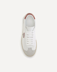 Prada's leather Sneakers are a perfect example of sporty elegance. With a round suede toe, they offer a sophisticated and contemporary look. The lace-up closure ensures a secure and comfortable fit, while the iconic triangular logo plaque on the outside adds a distinctive brand touch. The contrasting flat sole lends a bold, modern effect, while the branded insole completes the design, making these sneakers a must-have for those seeking style and comfort in one accessory. DETAILS - Sku: 2EE394FG000Y5T_F0970 - Season: SS25 - Composition: UPPER 100% Calf Leather Bos Taurus SOLE 100% Rubber - MADE IN ITALY