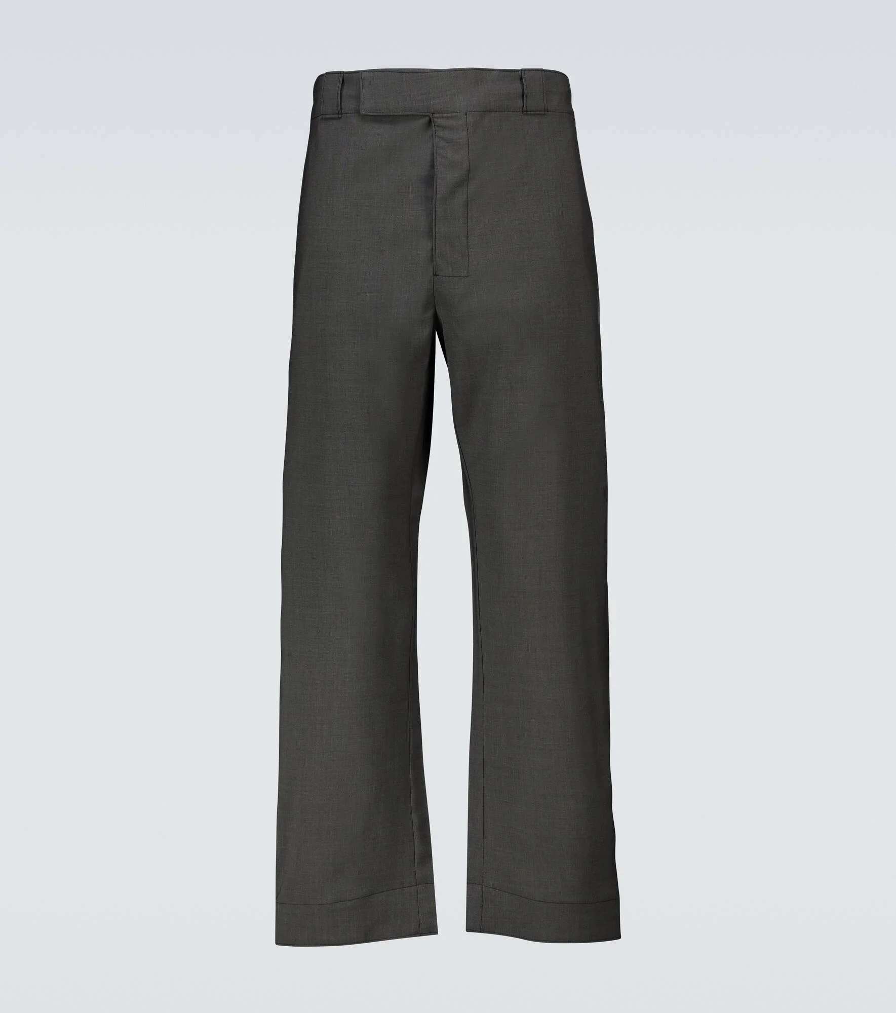 In a wide-leg fit, these ardesia grey pants from Prada are crafted from 100% virgin wool in Italy, with a zipped front and VELCRO® fastening. Product Details - Closure: self-ties, VELCRO® fastening, zipped front - Made in Italy - Material: 100% virgin wool - Designer color name: Ardesia - Care instructions: hand wash - Belt loops - Pockets: side slit pockets, back pockets - Pocket lining: 100% cotton - Item number: P00521894 Size & Fit - True to size - Wide-leg - High-waisted - The model in the picture is 185cm-6'1" and wearing a size IT 48